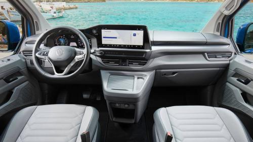 Ο σύγχρονος χαρακτήρας του νέου Transporter καθίσταται πιο εμφανής στο εσωτερικό, παρουσία -από το βασικό εξοπλισμό- ενός ψηφιακού πίνακα οργάνων 12” και μιας οθόνης αφής 13” για το σύστημα πολυμέσων που είναι συμβατό με Apple CarPlay και Android Auto. Ο οδηγός κάθεται πίσω από ένα πολυλειτουργικό τιμόνι, το χειρόφρενο είναι ηλεκτρικό, ενώ η ενεργοποίηση του κινητήρα γίνεται μέσω μπουτόν.