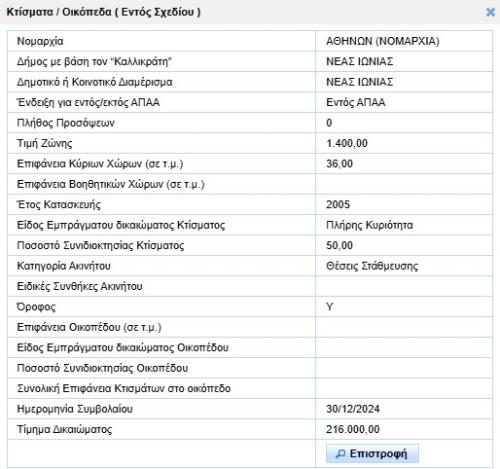 Λίγο πριν την εκπνοή του 2024, πάρκινγκ 36 τ.μ. στη Νέα Ιωνία άλλαξε χέρια για το ποσό των 216.000 ευρώ, στις 17 Σεπτεμβρίου χώρος στάθμευσης 16,61 τ.μ. πουλήθηκε για 330.000 ευρώ, και στις 13 Iουνίου θέση στάθμευσης 18 τ.μ. άλλαξε χέρια για 487.361 ευρώ.