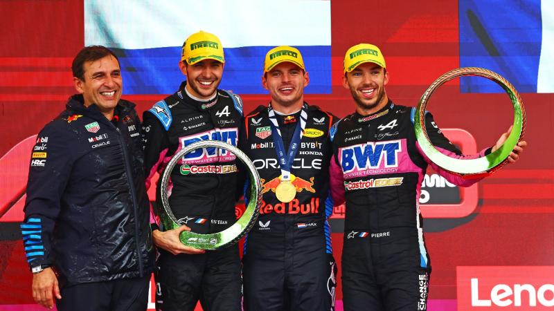 Σε αυτό ανέβηκαν ως τρίτος ο Pierre Gasly, ως δεύτερος ο teammate του στην Alpine Esteban Ocon κι ως νικητής, ο Max Verstappen.
