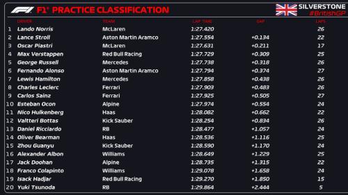 Ο οδηγός της McLaren σταμάτησε τα χρονόμετρα στο 1:27.420, τοποθετώντας εαυτόν στην κορυφή όταν έβαλε τη μαλακή γόμα ελαστικών της Pirelli. Μάλιστα, θα μπορούσε να κινηθεί ακόμα ταχύτερα αλλά στην τελική του προσπάθεια, ο γύρος του καταστράφηκε από τη Red Bull του Isack Hadjar που αντικατέστησε στο FP1 τον Sergio Perez.