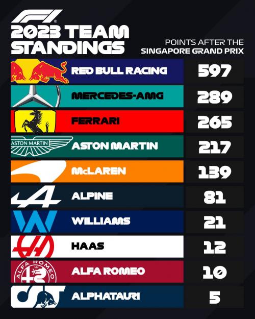 Η McLaren με τη σειρά της, πήρε πάλι πολλούς βαθμούς και είναι άνετα πέμπτη, κοιτώντας και πιο ψηλά. Όσο για τους δύο βαθμούς της Scuderia AlphaTauri και τον έναν της Haas, δεν άλλαξαν τις θέσεις τους.