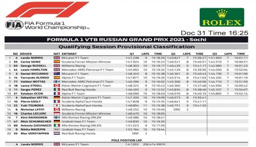 Ο Sainz είχε βρεθεί προσωρινά στην pole και τελικά θα είναι για πρώτη φορά στην καριέρα του στην πρώτη σειρά του grid. Ενώ ο Russell, έδωσε συνέχεια στα απίστευτα πλασαρίσματα με τη Williams, που αποδεικνύουν γιατί άξιζε την προαγωγή στη Mercedes.