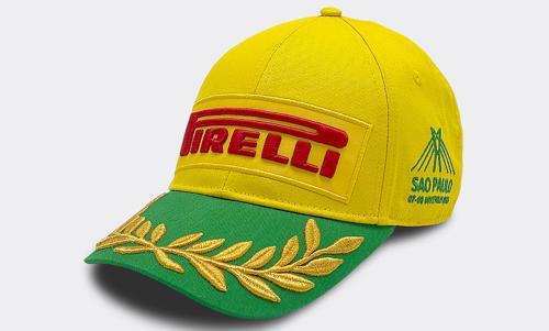 Αυτή την εβδομάδα, το καπέλο Pirelli Podium Cap είναι πράσινο και κίτρινο, αντικατοπτρίζοντας τα χρώματα της εθνικής σημαίας της Βραζιλίας. Η ειδική αυτή έκδοση, την οποία θα φορέσουν οι οδηγοί στο βάθρο, παράγεται από την Pirelli Design με σχεδιαστή τον Denis Dekovic.