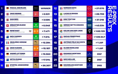 Την πεντάδα συμπλήρωσε ο Rene Rast της NEOM McLaren Formula E Team, που πέτυχε και τον ταχύτερο γύρο του ePrix.