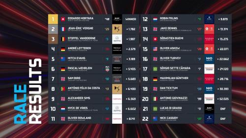 Στο 1-3 η Mercedes-EQ, στο 2-3 η Venturi, με έναν άλλο οδηγό με θητεία στη Formula 1, τον Lucas di Grassi, να τερματίζει τέταρτος. Ο πάντα ταχύς Robin Frijns της Envision Racing επιβλήθηκε του Da Costa στη μάχη για μία θέση στο Top5, η οποία κρίθηκε στον τελευταίο γύρο και με επαφή ανάμεσά τους!