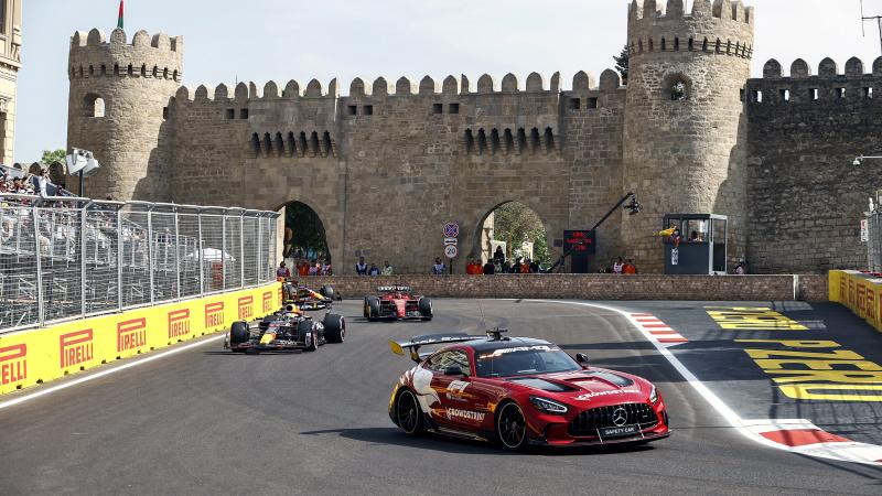 Οι διαφορές στον αγώνα μηδενίστηκαν μόνο μια φορά στον 11ο γύρο, όταν ο De Vries ακούμπησε τον τοίχο και βγήκε το αυτοκίνητο ασφαλείας. Κάποιοι οδηγοί είχαν ήδη μπει στα πιτ επιχειρώντας να κάνουν παράκαμψη. Ανάμεσά τους και ο Verstappen που άλλαξε ελαστικά δευτερόλεπτα πριν την απόφαση για αυτοκίνητο ασφαλείας. Οι περισσότερες ομάδες έκαναν αλλαγή ελαστικών και στους δυο οδηγούς τους, υπό το αυτοκίνητο ασφαλείας.