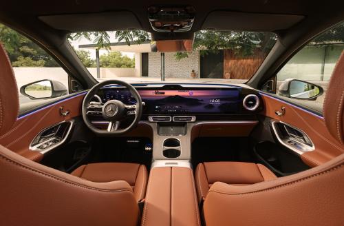 Στο εσωτερικό, η Mercedes-Benz οδηγεί τη σχεδιαστική φιλοσοφία Sensual Purity σε νέο επίπεδο. Η ενιαία MBUX HYPERSCREEN μοιάζει να αιωρείται και δημιουργεί μία καθηλωτική ψηφιακή εμπειρία. Ο ενεργός περιβαλλοντικός φωτισμός ενισχύει τη αίσθηση ότι το αυτοκίνητο έρχεται από το μέλλον. Οι αυξημένοι χώροι — ειδικά πίσω — και η πανοραμική οροφή προσφέρουν μία πλούσια αίσθηση ευρυχωρίας και κομψότητας. Προαιρετικά, η πανοραμική οροφή SKY CONTROL διαθέτει φωτισμό που αναδεικνύει 162 φωτεινά "αστέρια" στον νυχτερινό ουρανό. Υλικά υψηλής ποιότητας διασφαλίζουν κορυφαία υφή και πολυτέλεια - συμπεριλαμβανομένης της επιλογής υλικών που δεν είναι ζωικής προέλευσης. Με το προαιρετικό Vegan Package, το οποίο είναι πιστοποιημένο από τον οργανισμό The Vegan Society η μάρκα θέτει νέο σημείο αναφοράς στα vegan υλικά.