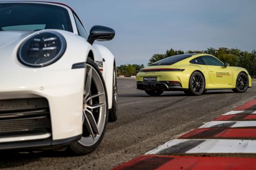 Η συνέχεια μας βρήκε στο αριστερό κάθισμα της Porsche 911 GTS, μιας υβριδικής υλοποίησης, η οποία αποτέλεσε την ευχάριστη έκπληξη της ημέρας. Στην περίπτωση GTS, στην πλάτη του οδηγού τοποθετείται ένας υπερτροφοδοτούμενος εξακύλινδρος κινητήρας χωρητικότητας 3,6 λίτρων, τη λειτουργία του οποίου υποστηρίζει ένα ηλεκτρικό μοτέρ 41 kW.
