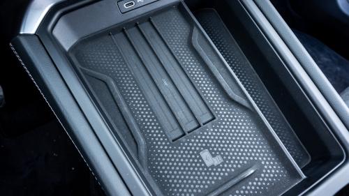 Κάτω από την οθόνη βρίσκονται φωτιζόμενα sliders για τη ρύθμιση της θερμοκρασίας και της έντασης του ήχου, ενώ μπροστά από την κεντρική κονσόλα υπάρχουν δυο θύρες USB και θέση για smartphone με δυνατότητα επαγωγικής φόρτισης και ψύξη, όπου φέρει μικροσκοπικά «κανάλια» που θυμίζουν πισίνα, ένα από τα μικρά «easter eggs», που δείχνουν ότι καμία λεπτομέρεια δεν αφέθηκε στην τύχη της.