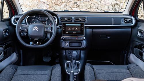 Όλες αυτές οι αλλαγές στην καμπίνα δεν έχουν επηρεάσει στο ελάχιστο τα επίπεδα πρακτικότητας που χαρακτηρίζουν το C3, με τα Advanced Comfort καθίσματα να επιβεβαιώνουν για μία ακόμη φορά τα εξαιρετικά επίπεδα άνεσης που προσφέρουν, ακόμη και στην πολύωρη οδήγηση. Η μεγάλη επτάιντση οθόνη αφής του συστήματος πολυμέσων προσφέρει άμεση και εύκολη πρόσβαση στα συστήματα του C3 και το κλιματιστικό του, οι διακόπτες και τα χειριστήρια βρίσκονται εκεί που θα περίμενε κανείς για μοντέλο της Citroen και το μόνο σημείο που θα μπορούσε να αποτελεί σημείο γκρίνιας στην καθημερινή κίνηση είναι οι μικρές σε διάμετρο ποτηροθήκες, οι οποίες, σε συνδυασμό με την τοποθέτηση τους κοντά στην κεντρική κονσόλα, αποκλείουν την «πρόσβαση» των περισσότερων θερμός αλλά και πλαστικών ποτηριών της αγοράς. Αυτό και η μη τοποθέτηση φυσικού κουμπιού στην κεντρική κονσόλα για την άμεση ενεργοποίηση ή απενεργοποίηση του κλιματισμού.