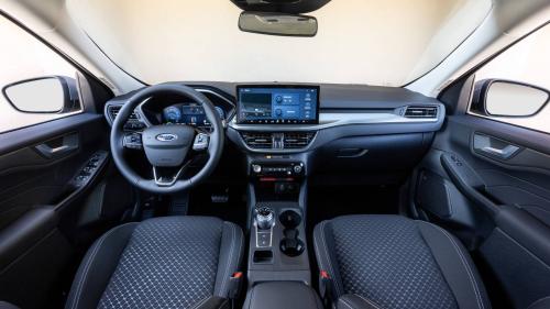 Στο εσωτερικό, η ανανέωση φέρνει έναν πιο προηγμένο τεχνολογικά «αέρα», αφού το σύστημα πολυμέσων τεχνολογίας SYNC 4 προσφέρει διπλάσια υπολογιστική ισχύ σε σχέση με τον προκάτοχό του. Ωστόσο ενώ το σύστημα προσφέρει ένα εύχρηστο και πλήρες μενού, το οποίο ο χρήστης μπορεί να χειριστεί μέσω μίας οθόνης 13,2 ιντσών στο κέντρο του ταμπλό, η λίγο «οκνηρή» για τα σημερινά δεδομένα ταχύτητα απόκρισής του είναι από τα ελάχιστα σημεία που μας υπενθυμίζουν ότι το ανανεωμένο Kuga λανσαρίστηκε το 2024.