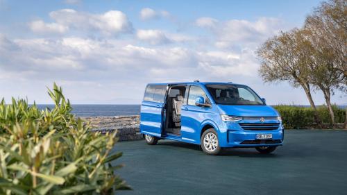 Επιπλέον, οι αμιγώς ηλεκτρικές προτάσεις e-Transporter και e-Caravelle προσφέρονται με κινητήρα 136, 218 ή 286 ίππων που στέλνει την κίνηση στους πίσω τροχούς (σε μεταγενέστερο χρόνο θα υπάρξουν και τετρακίνητες εκδόσεις) και αντλεί ενέργεια από μπαταρία ενεργειακής χωρητικότητας 64 kWh που εξασφαλίζει αυτονομία 331 χλμ. Το μοντέλο μπορεί να υποστηρίξει φόρτιση σε wall box (AC) ισχύος 11 kW και σε ταχυφορτιστή (DC) 125 kW, όπου στην τελευταία περίπτωση ο ανεφοδιασμός από το 10 στο 80% διαρκεί 39 λεπτά. Ειδικά η ισχυρή έκδοση των 285 PS μπορεί και επιταχύνει άκοπα από στάση, αναπτύσσοντας ταχύτητα 100 χλμ./ώρα σε 7,4 δλ. στο VW Transporter panel van με το κοντό μεταξόνιο. Αργότερα θα είναι διαθέσιμη και επαναφορτιζόμενη υβριδική έκδοση (eHybrid) με απόδοση 232 PS και αυτόματο κιβώτιο CVT.