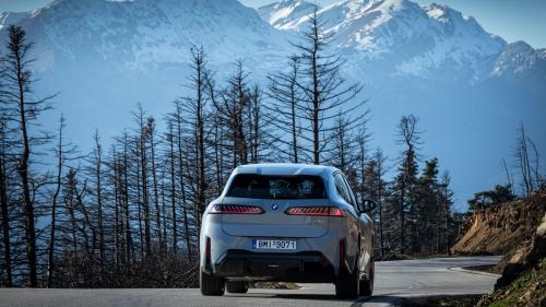 Ας πάμε όμως στην εμπειρία μας με το premium αυτό μοντέλο. Με εφαλτήριο την Αθήνα, προορισμό την Πελοπόννησο και ενδιάμεσο σταθμό τη λίμνη Δόξα. Μία διαδρομή που περιλάμβανε κάθε λογής διαδρομές, από εθνικό δίκτυο μέχρι φιδίσιους δρόμους στα βουνά. Στα χέρια μας είχαμε τη μοναδική προς το παρόν διαθέσιμη επιλογή – την iX3 50 xDrive. Την τετρακίνητη διάταξη που αποτελείται από έναν ασύγχρονο κινητήρα στον εμπρός άξονα και έναν ισχυρότερο, σύγχρονο ηλεκτροκινητήρα στον πίσω. Συνδυαστικά προσφέρουν ισχύ της τάξης των 345 kW/470 αλόγων και 645 Nm ροπής. Τιμή απαραίτητη για να δώσει την απαραίτητη σβελτάδα στο γενικά βαρύ αμάξωμα, που φτάνει τους 2.4 τόνους.