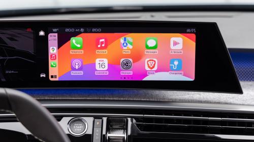 Η αίσθηση από τα υλικά που τον περιβάλουν είναι πολύ όμορφη, με την υφή τους να την επιβεβαιώνουν. Το πανοραμικό i-Cockpit των 21 ιντσών είναι χάρμα οφθαλμών, έχει γρήγορη απόκριση στις εντολές και διαθέτει μεγάλα ψηφιακά πλήκτρα για διευκόλυνση στη χρήση. Ο πίνακας οργάνων αναφέρει ποσοστό φόρτισης 97% και 498 χλμ. αυτονομίας. Καλά ξεκινάμε.
