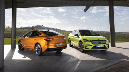 Στη βάση του μοντέλου βρίσκεται η πισωκίνητη έκδοση 60, που φέρει μπαταρία ιόντων-λιθίου με ενεργειακή χωρητικότητα στα 62 kWh και ηλεκτρικό κινητήρα 180 ίππων. Ακολουθεί το Enyaq Coupe iV 80 με την μεγαλύτερη μπαταρία των 82 kWh και απόδοση στους 204 ίππους. Με κίνηση στους πίσω τροχούς το συγκεκριμένο μοντέλο προσφέρει τη μεγαλύτερη αυτονομία από όλα τα υπόλοιπα, η οποία ξεπερνά τα 540 χλμ. στον κύκλο WLTP. Και οι δύο αυτές εκδόσεις ολοκληρώνουν τη διαδικασία των 0-100 χλμ./ώρα σε 8,8 δευτερόλεπτα με την τελική ταχύτητα να φτάνει στα 160 χλμ./ώρα.
