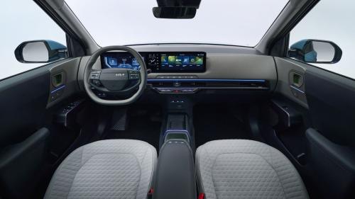 Το EV2 εξοπλίζεται με το νεότερο τριπλό σύστημα infotainment ccNC της Kia, που αποτελείται από οθόνη οδηγού 12,3”, οθόνη κλιματισμού 5,3” και κεντρική οθόνη αφής 12,3”. Ο ατμοσφαιρικός φωτισμός και τα οικολογικά υλικά ενισχύουν τη σύγχρονη αίσθηση της καμπίνας.