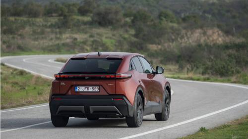 Η μπροστινή όψη είναι πιο «καθαρή», με λεπτά φωτιστικά σώματα και αεροδυναμικές επιφάνειες, ενώ το πίσω μέρος ακολουθεί τη λογική των fastback SUV με έντονη κλίση της οροφής.
