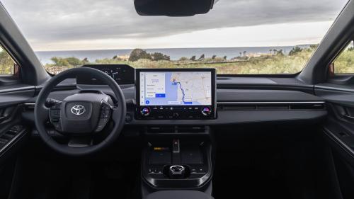 Στο εσωτερικό, όπως και στο bZ4X, έτσι και εδώ είναι έντονος ο ψηφιακός χαρακτήρας. Στο κέντρο του ταμπλό δεσπόζει στάνταρ μια μεγάλη οθόνη αφής 14 ιντσών που φιλοξενεί το σύστημα πολυμέσων και πλοήγησης, όπου διαθέτει ειδική λειτουργία για ηλεκτρικά οχήματα, υπολογίζοντας στάσεις φόρτισης ανάλογα με την κατάσταση της μπαταρίας και την αυτονομία που απομένει.