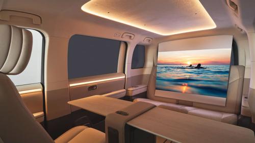 Το εσωτερικό, όπου εισέρχονται οι επιβάτες χωρίς το εμπόδιο της κεντρικής κολόνας, θυμίζει περισσότερο σαλόνι παρά καμπίνα οχήματος. Το δάπεδο είναι επίπεδο, η θέση του οδηγού περιστρέφεται προς τα πίσω, ενώ στη μέση υπάρχει ένα αναδιπλούμενο τραπεζάκι.
