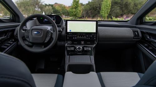 Οι κύριες αισθητικές καινοτομίες βρίσκονται στο εσωτερικό, όπου το νέο Subaru Solterra διαθέτει πλέον τιμόνι με νέο, πιο τετράγωνο σχεδιασμό, που βελτιώνει την ορατότητα της ψηφιακής οθόνης και την άνεση στην οδήγηση.