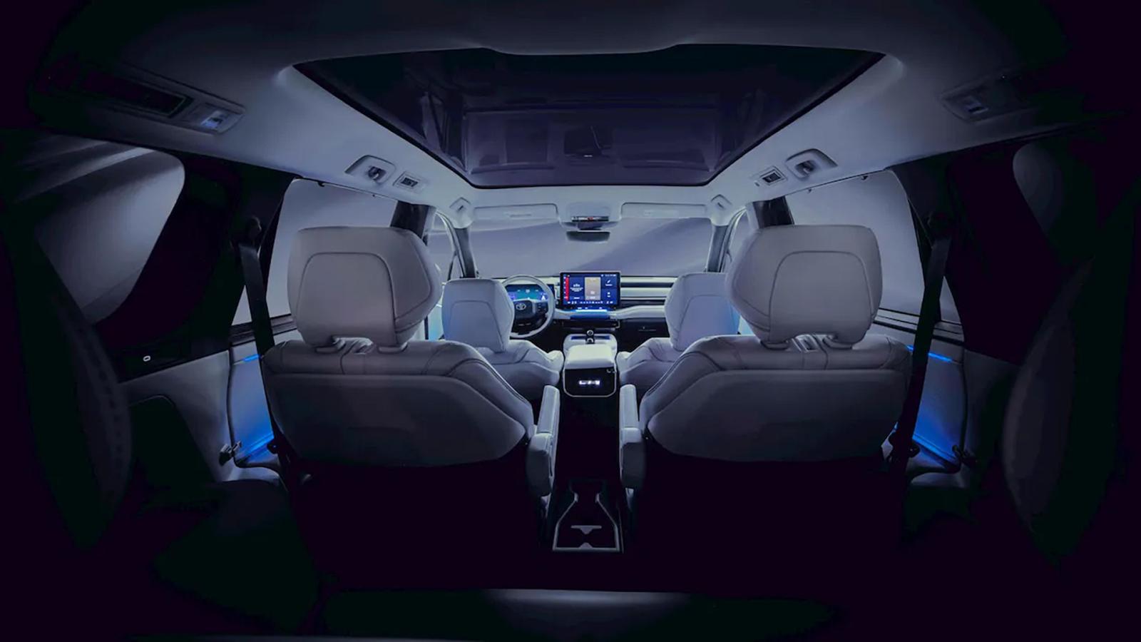 Στη φωτογραφία που έδωσε στη δημοσιότητα η ιαπωνική φίρμα, διακρίνονται καθαρά οι τρεις σειρές, παρά τον χαμηλό φωτισμό της εικόνας. Η διάταξη παραπέμπει σε ένα ευρύχωρο οικογενειακό SUV, με σύγχρονη σχεδίαση ταμπλό και αναβαθμισμένο σύστημα infotainment, αντίστοιχο με εκείνο που συναντάμε στο νέο C-HR.