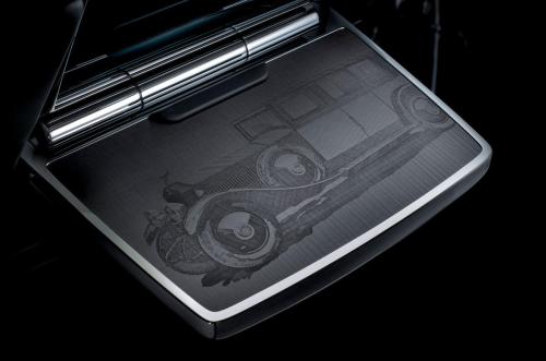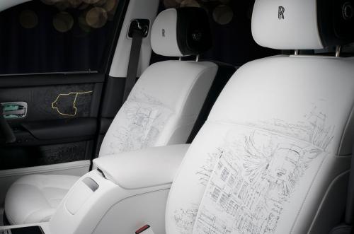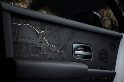 Η πιο εντυπωσιακή λεπτομέρεια ίσως είναι η περίτεχνη ξυλουργική στις επενδύσεις των θυρών, που απεικονίζει ιστορικά ταξίδια που πραγματοποιήθηκαν με Phantom. Η πόρτα του συνοδηγού δείχνει το τοπίο της θερινής κατοικίας του Henry Royce στο West Wittering, ενώ η πόρτα του οδηγού απεικονίζει το ταξίδι 4.500 μιλίων στην Αυστραλία, που πραγματοποίησε η πρώτη Phantom της εποχής BMW. Κάθε μία από αυτές τις δημιουργίες συνδυάζει 3D μαρκετερί, χαράξεις με λέιζερ, στρώσεις 3D μελάνης και επίχρυση επένδυση 24 καρατίων.