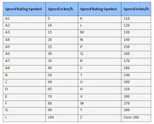 Ανάμεσα σε αυτές τις πληροφορίες βρίσκεται και ο δείκτης ταχύτητας ενός ελαστικού, ο οποίος θα πρέπει επίσης να είναι σύμφωνος με τις προδιαγραφές του ατασκευασή.