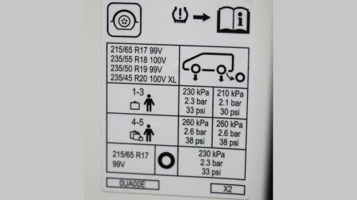 Το πιο σημαντικό ίσως από αυτά τα αυτοκόλλητα είναι εκείνο που ενημερώνει τον οδηγό για τις ενδεικτικές πιέσεις των ελαστικών του αυτοκινήτου. Πιέσεις που πρέπει να ελέγχονται ιδανικά κάθε δύο εβδομάδες ώστε το αυτοκίνητο να κινείται και να φρενάρει πάντα με ασφάλεια, να μην φθείρει πρώιμα και ανομοιόμορφα τα ελαστικά του και να μην καταναλώνει άσκοπα καύσιμο.