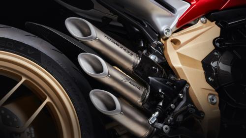 Το cornering ABS διαθέτει τρεις βαθμίδες ευαισθησίας, ενώ το νέο quickshifter εξασφαλίζει ακαριαίες αλλαγές σχέσεων με ακόμα πιο φυσική αίσθηση. Το σύστημα φωτισμού matrix LED προσαρμόζεται δυναμικά στη γωνία κλίσης, προσφέροντας κορυφαία ορατότητα τη νύχτα, ενώ το ενσωματωμένο GPS σύστημα με anti-theft, crash detection και γεωπερίμετρο (geofencing) συνεργάζεται με τη νέα εφαρμογή MV App για πλήρη έλεγχο του οχήματος από το κινητό.