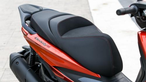 Η φαρδιά νέα σέλα φέρει ποιοτικό αφρώδες και νέα επένδυση σε σχέση με την προηγούμενη και δείχνει ικανή να κρατήσει ξεκούραστο τον αναβάτη αλλά και τον συνεπιβάτη και σε μεγαλύτερες διαδρομές, εκτός των τειχών της πόλης. Χώρος υπάρχει μπόλικος, εκτός ίσως από εκείνον που έχει προβλεφθεί για τα πέλματα που είναι μεν αρκετός αλλά οριακός για τους ψηλότερους. Όπως και να έχει δύσκολα θα βρεθεί αναβάτης που δεν θα βολευτεί στη σέλα του Beverly, η οποία τον τοποθετεί παράλληλα λίγο πιο κοντά στο τιμόνι, σε σχέση με πριν, προσφέροντας έτσι μια ελαφρώς πιο επιθετική θέση οδήγησης, που βελτιώνει τον έλεγχο στις χαμηλές αλλά και υψηλότερες ταχύτητες κίνησης.