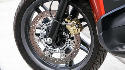 Η προσεγμένη συμπεριφορά του Beverly έχει διατηρηθεί φυσικά και στη νέα γενιά και οι στροφές δεν θα αποτελέσουν ποτέ πρόβλημα για τον αναβάτη του, με τις αντιδράσεις να είναι πάντα προοδευτικές. Ο αναβάτης έχει σύμμαχος σε αυτές τις συνθήκες και το σύστημα πέδησης του Beverly που επαρκεί πλήρως για τις ταχύτητες που αναπτύσσει με τη λειτουργία του. Τη λειτουργία των φρένων επιβλέπει το τελευταίας γενιάς ABS σύστημα της Bosch, το οποίο λειτουργεί γρήγορα και αποτελεσματικά στο μπλοκάρισμα κάποιου εκ των δύο τροχών και στις συνθήκες μειωμένης πρόσφυσης που επικρατούν στους ελληνικούς αστικούς δρόμους.