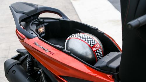 Κάτω από τη σέλα το Beverly προσφέρει ικανό χώρο για την αποθήκευση δύο κρανών ανοιχτού τύπου (jet), ενώ στην ποδιά υπάρχει και ντουλαπάκι για μικροαντικείμενα που χρειάζεστε άμεσα, στο οποίο θα βρείτε και θύρα USB. Ο χώρος κάτω από τη σέλα είναι επίσης φωτιζόμενος, ενώ αν θέλετε να μεταφέρετε περισσότερα πράγματα η σχάρα στο πίσω μέρος με τις ενσωματωμένες για τον συνεπιβάτη χειρολαβές, έχει σεβαστό πλάτος και μήκος για να δέσετε εκεί κάτι με ασφάλεια. Υπάρχει φυσικά και η δυνατότητα τοποθέτησης top case από τα επίσημα αξεσουάρ της ιταλικής εταιρίας, και όχι μόνο.