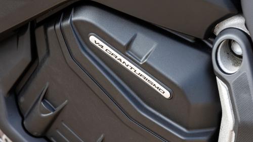 Ο V4 κινητήρας είναι πανταχού παρών και έτοιμος να εκτοξεύσει μπροστά την ιταλική adventure σε κάθε άνοιγμα του γκαζιού, σχεδόν άσχετα από την επιλεγμένη χαρτογράφηση και την σχέση που έχει επιλέξει ο αναβάτης στο εύχρηστο κιβώτιο με το καλό σε λειτουργία quickshifter και τις λογικές διαδρομές του επιλογέα. Το κάνει μάλιστα αυτό με την απόκριση του ride by wire γκαζιού να είναι γλυκιά και συνάμα άμεση και να μην επιδέχεται ουσιαστικής κριτικής, ενώ τα γενικότερα επίπεδα λειτουργίας του χαρακτηρίζονται από τον απαραίτητο πολιτισμό για μια μοτοσικλέτα που φτιάχτηκε για να ταξιδεύει παντού.
