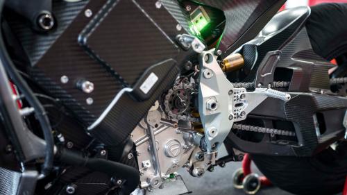 Ο μετατροπέας του ρεύματος ζυγίζει πέντε κιλά και προέρχεται από τον κόσμο των ηλεκτρικών αγωνιστικών αυτοκινήτων, κάτι που μας δείχνει ότι το «χεράκι» του στη σχεδίαση και τη διασφαλιση της αξιοπιστίας της αγωνιστικής Ducati έχει βάλει και το Volkswagen Group, με την Ducati να έχει ως μητρική του ομίλου τη Lamborghini.