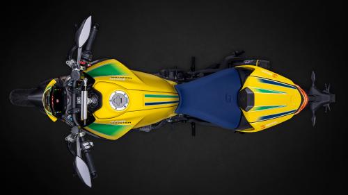 Άλλες αισθητικές παρεμβάσεις είναι οι λωρίδες χρώματος στις ζάντες και στις δαγκάνες των φρένων, αλλά και η μπλε σέλα με το έμβλημα 'S' του Senna. Η Ducati θα κατασκευάσει μόνο 341 αντίτυπα της σπάνιας αυτής Monster, και καθένα θα έχει τη δική του πλακέτα με τον αριθμό αντιτύπου.