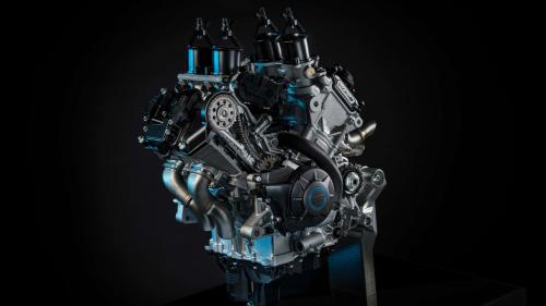 Αυτό φαίνεται και από τη χρήση αντικατοπτρικού στροφαλοφόρου άξονα, μια τεχνική που χρησιμοποιείται σε μοτοσυκλέτες όπως η Ducati Panigale V4 και τα πρωτότυπα του MotoGP για να μειώνουν την περιστροφική αδράνεια των τροχών και να βελτιώνουν την ευελιξία.