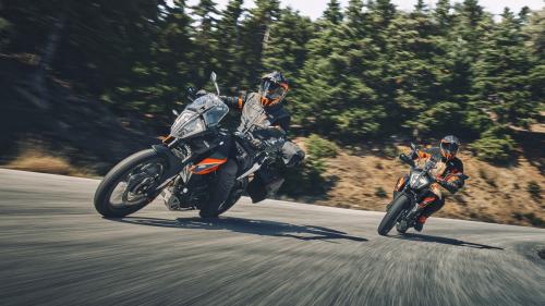 Στον τομέα των αναρτήσεων οι ποιοτικές επιλογές της KTM δίνουν ελευθερία κινήσεων στον αναβάτη, σε άσφαλτο και χώμα, με ρυθμιζόμενο ανεστραμμένο πιρούνι και αμορτισέρ APEX της WP, ενώ στα φρένα χρησιμοποιούνται δίσκοι 320 χλστ. και δαγκάνες της Bybre.