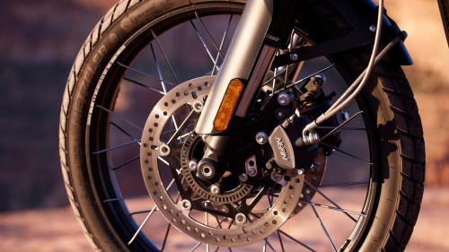 Οι αλλαγές για την XE συνεχίζονται και τον τομέα της πέδησης με την Triumph να επικαιροποιεί το εμπρός φρένο αλλάζοντας της ακτινικής τοποθέτησης 4πίστονες M50 δαγκάνες της Brembo με την κορυφαία επιλογή των Ιταλών, τις μονομπλόκ δαγκάνες Stylema που συνεργάζονται με δίσκους διαμέτρου 320 χλστ.