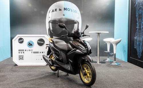 Από το περίπτερο δεν λείπει ούτε το μεγάλο έπαθλο του διαγωνισμού του carandmotor.gr το scooter UM Xpeed 125 RX, το οικονομικό μοντέλο της αμερικάνικης UM Motorcycles, το οποίο οδηγείται με δίπλωμα αυτοκινήτου.