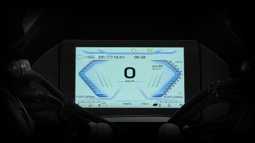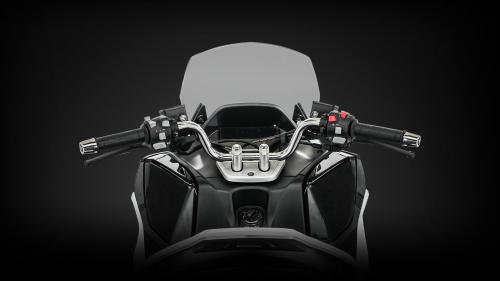 Την ίδια στιγμή, οι ρυθμιζόμενες μανέτες επιτρέπουν στον αναβάτη να φέρει τα φρένα στα μέτρα του. Η TFT έγχρωμη οθόνη του είναι από τις πιο ευκρινείς και πλήρεις στην κατηγορία, με πληροφορίες για την κατάσταση του scooter, ακόμα και για τη θερμοκρασία και την πίεση των ελαστικών μέσω ειδικών αισθητήρων, ενώ όλα τα φωτιστικά σώματα είναι τεχνολογίας full LED, προσφέροντας τόσο άριστη ορατότητα όσο και χαρακτηριστική αισθητική.
