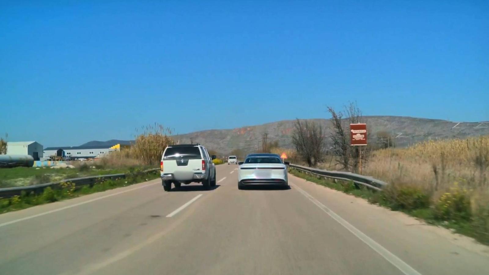 Στη συνέχεια πραγματοποιεί και δεύτερο επικίνδυνο ελιγμό, σε σημείο με συνεχή γραμμή, όπου η προσπέραση απαγορεύεται.