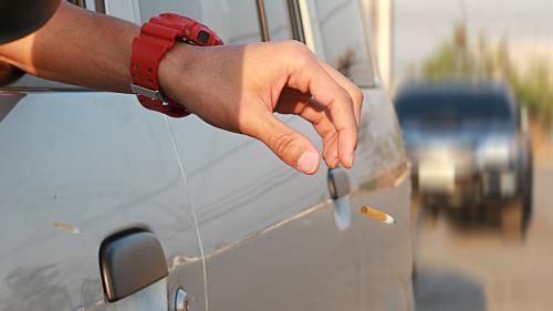 Σύμφωνα με τον ΚΟΚ, οι οδηγοί πάσης φύσεως οχημάτων που απορρίπτουν εκτός του οχήματός τους αντικείμενα ή ουσίες που ρυπαίνουν ή που μπορούν να προκαλέσουν πυρκαγιά ή ατύχημα, όπως τσιγάρα, τιμωρούνται με επί τόπου αφαίρεση των στοιχείων κυκλοφορίας και της άδειας οδήγησης, από το βεβαιούντα την παράβαση, για 60 ημέρες και χρηματικό πρόστιμο 150 ευρώ.