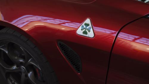 Οι Giulia και Stelvio Quadrifoglio ξεχωρίζουν χάρη στο εμβληματικό τετράφυλλο τριφύλλι, το οποίο έκανε την πρώτη του εμφάνιση το 1923, όταν ο Ugo Sivocci κέρδισε στο θρυλικό Targa Florio με την Alfa Romeo RL του διακοσμημένη με αυτό το γούρικο σήμα. Από τότε, το έμβλημα χαρακτηρίζει τα ισχυρότερα και πιο αποκλειστικά μοντέλα της μάρκας, τόσο σε αγώνες όσο και σε αυτοκίνητα δρόμου.