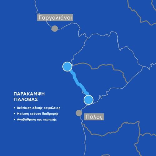 Στόχος της πολιτείας είναι η παράκαμψη στη Γιάλοβα της Μεσσηνίας, μήκους 4,2 χιλιομέτρων, να συμβάλει στην βιώσιμη ανάπτυξη της περιοχής, στην οποία δραστηριοποιούνται μεγάλες ξενοδοχειακές μονάδες και τουριστικές επιχειρήσεις, διευκολύνοντας την διέλευση ενός συνεχώς αυξανόμενου αριθμού τουριστών, αλλά και των κατοίκων της περιοχής δημιουργώντας συνθήκες ασφαλούς μετακίνησης, καθώς ο υφιστάμενος οδικός άξονας διέρχεται μέσα από τον οικισμό της Γιάλοβας. Το έργο διαθέτει προϋπολογισμό 37,4 εκατομμύριων ευρώ.