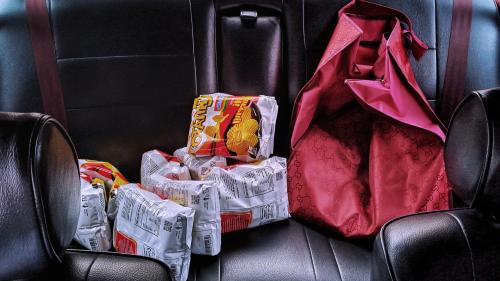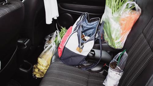 Το ίδιο ισχύει και για σακούλες με ψώνια, σχολικές τσάντες ή άλλα αντικείμενα που συχνά τοποθετούνται πρόχειρα στο πίσω κάθισμα ή στην εταζέρα. Σε περίπτωση εμπρόσθιας σύγκρουσης, μπορούν να εκτοξευθούν γρήγορα προς το μπροστινό παρμπρίζ, χτυπώντας με μεγάλη δύναμη τα κεφάλια οδηγού και συνοδηγού.