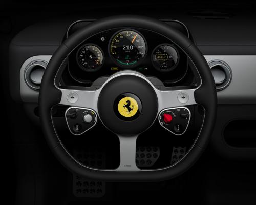 Για να ενισχυθεί αυτή η αίσθηση, υπάρχει ακόμη και φυσικός δείκτης που κινείται πάνω από ψηφιακά γραφικά, αποδεικνύοντας ότι η Ferrari δεν αρκέστηκε στη λογική των pixels.