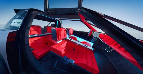 Επειδή η απόλαυση είναι επίσης και χρώμα – και το Polygon Concept είναι ένα μανιφέστο του ενθουσιασμού της Peugeot για το μέλλον της αυτοκίνησης – το πρωτότυπο διαθέτει ζωντανές και παιχνιδιάρικες πινελιές: σε πάνελ αμαξώματος, τροχούς, αφρό καθισμάτων, ακόμη και στα ελαστικά της Good Year που είναι χαραγμένα με λέιζερ.