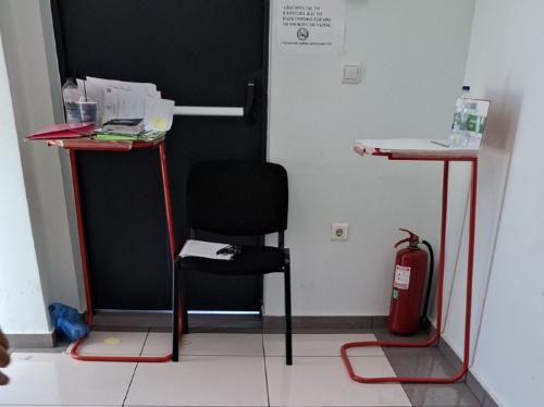 Κάποιοι θέλοντας να ολοκληρώσουν το πρωτοποριακό γραφείο από τους κάδους ανακύκλωσης τοποθέτησαν και μία καρέκλα ανάμεσά τους ώστε να μπορούν να ακουμπούν τα προσωπικά τους αντικείμενα (τσαντάκια, κ.ά.) μέχρι να συμπληρώσουν ή να διορθώσουν τα έγγραφα που θέλουν να καταθέσουν καθώς επάνω στους κάδους ανακύκλωσης ο χώρος είναι πολύ περιορισμένος.