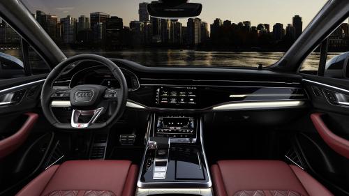 Στο πίσω μέρος, τέσσερις απολήξεις της εξάτμισης μαρτυρούν την ισχύ που κρύβεται κάτω από το καπό. Στο εσωτερικό, η Audi συνεχίζει με την ψηφιακή της φιλοσοφία, ενώ το μεγάλο αμάξωμα φιλοξενεί τρεις σειρές καθισμάτων με επτά θέσεις και άφθονο χώρο για αποσκευές.