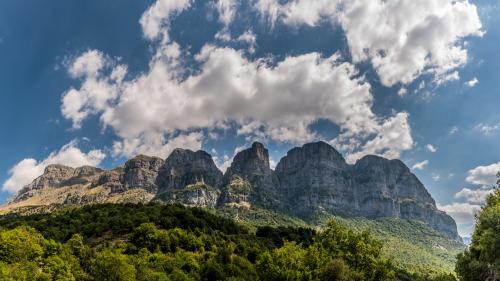 Οι επιβλητικοί «πύργοι» της Αστράκας υψώνονται μπροστά σου, σχηματίζοντας ένα φυσικό τείχος που μοιάζει περισσότερο με οχυρωματικό έργο παρά με βουνό. Από εκεί άλλωστε πήρε και το όνομά του ο περίφημος «Τοίχος της Τύμφης». Οι κάθετοι βράχοι, οι σκιές που πέφτουν πάνω στις χαράδρες και η συνολική μεγαλοπρέπεια δημιουργούν ένα σκηνικό που δύσκολα συναντάς αλλού στην Ελλάδα.
